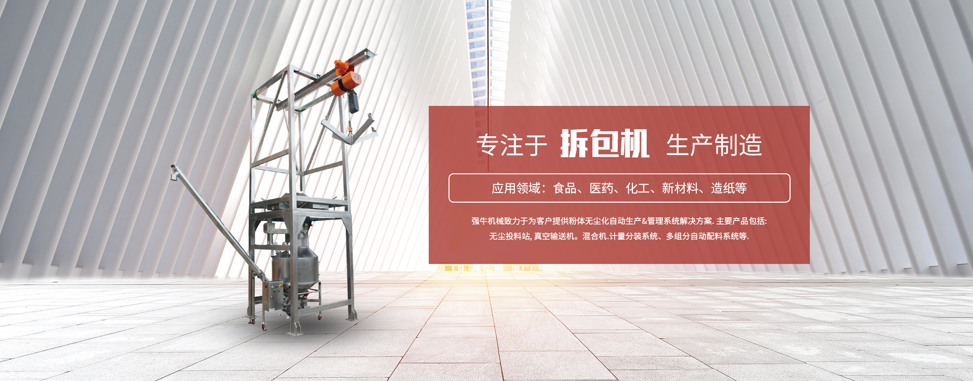 拆包機(jī)廠(chǎng)家:強(qiáng)牛機(jī)械致力于為客戶(hù)提供粉體無(wú)塵化自動(dòng)生產(chǎn)&管理系統(tǒng)解決方案.關(guān)于我們